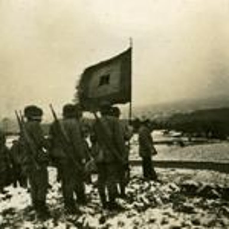 後來敵人進攻了,還是照他們那套「一板三眼」的打法,只要發現那個山頭上有槍聲,便是飛機炸,炮火轟,然後才由步兵進攻。炸的轟的盡是空山頭,十個八個人的戰鬥小組好掩蔽,等到步兵進攻了,放一輪槍,退到側後山頭上,又玩其「太極」。