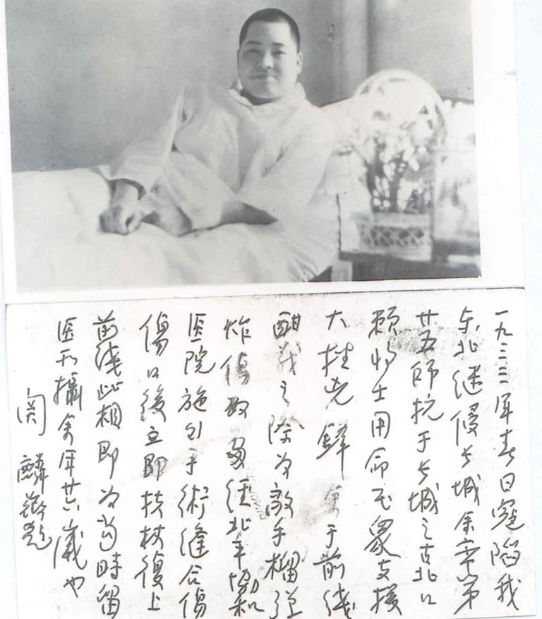 於協和醫院開刀取出破片後,又裹創扶杖到前方會同友軍參加南天口之戰,戰績輝煌,舉世歡騰,強寇震驚。造成民國史上『張自忠揚威喜峰口,關麟徵殲敵古北口』的歷史美談。 」