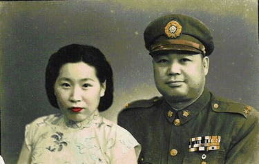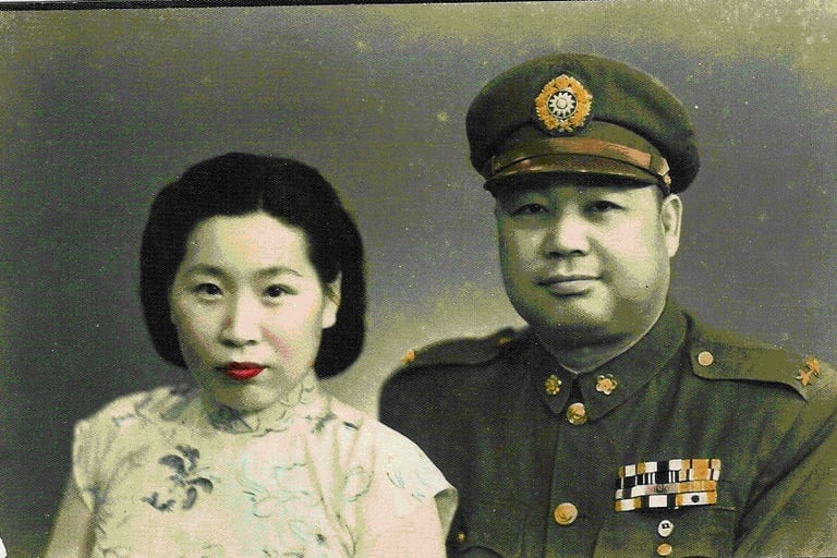 關麟徵將軍揮毫,夫人關徐孝仁相伴。