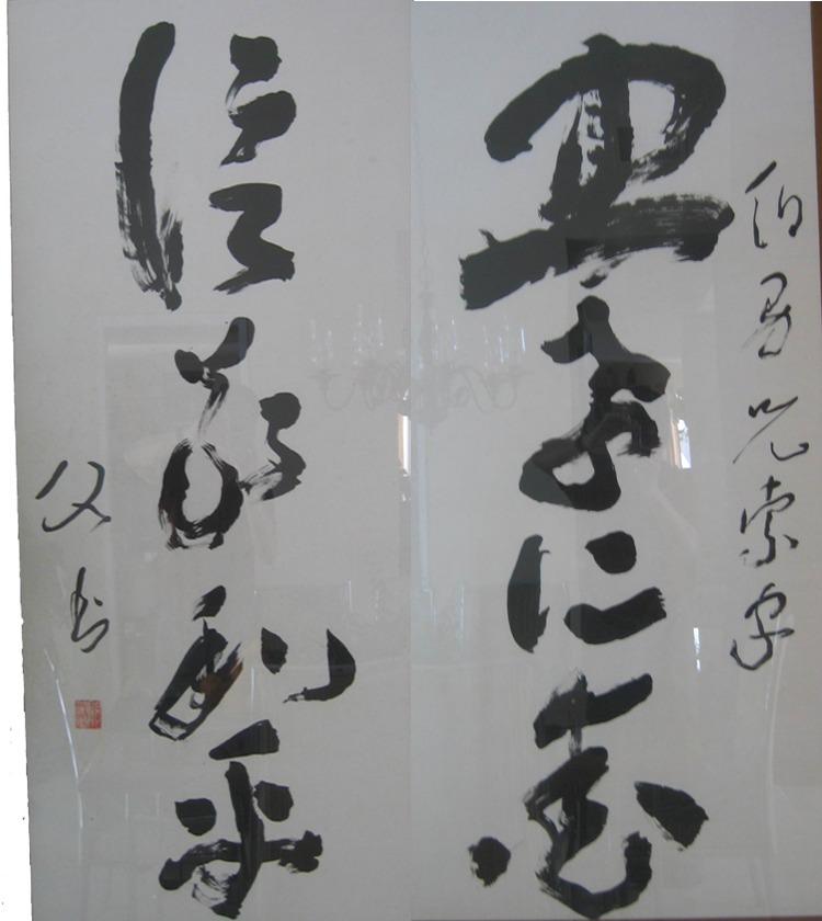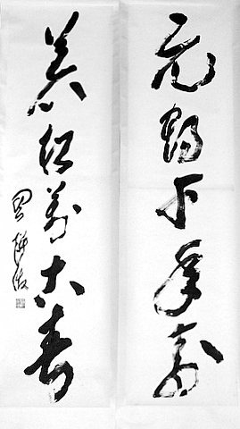 書法造詣較深,擅長草書,對唐代懷素和尚的草書《聖母》、《食魚》、《千字文自序》諸帖和近代草聖於右任的《千字文》等作品都作過精心的研究和練習。他的草書,曾參加過香港大會堂的展出,受到好評。